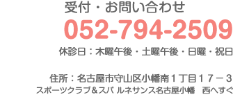詳しくは、診療時間内に、受付までお電話(052-794-2509)ください。